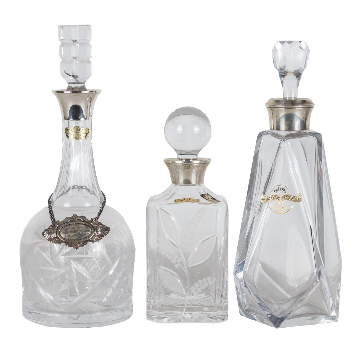 Realizadas en cristal tallado y con embocadura en plata. Altura: De 22 a 30 cm.