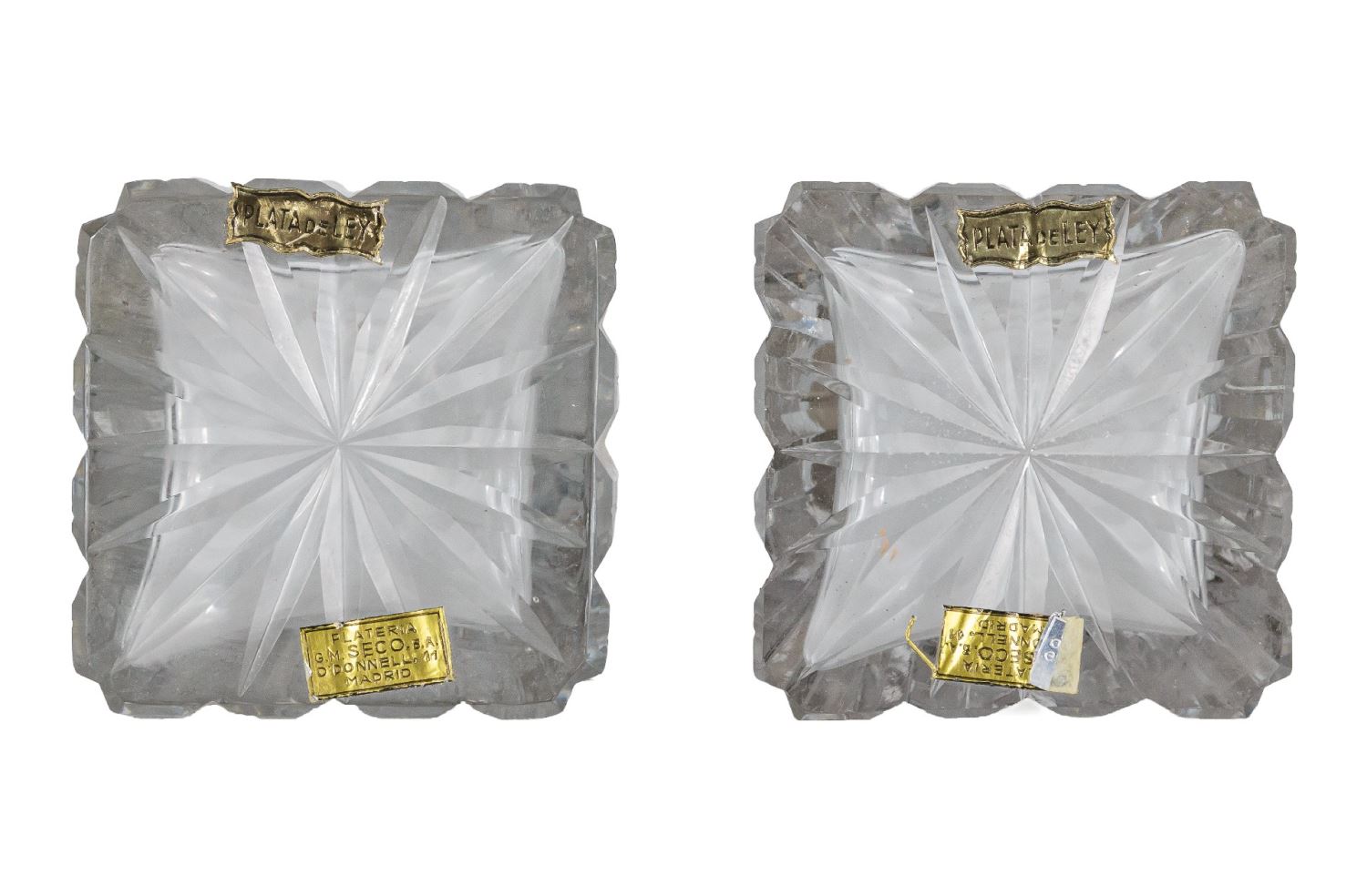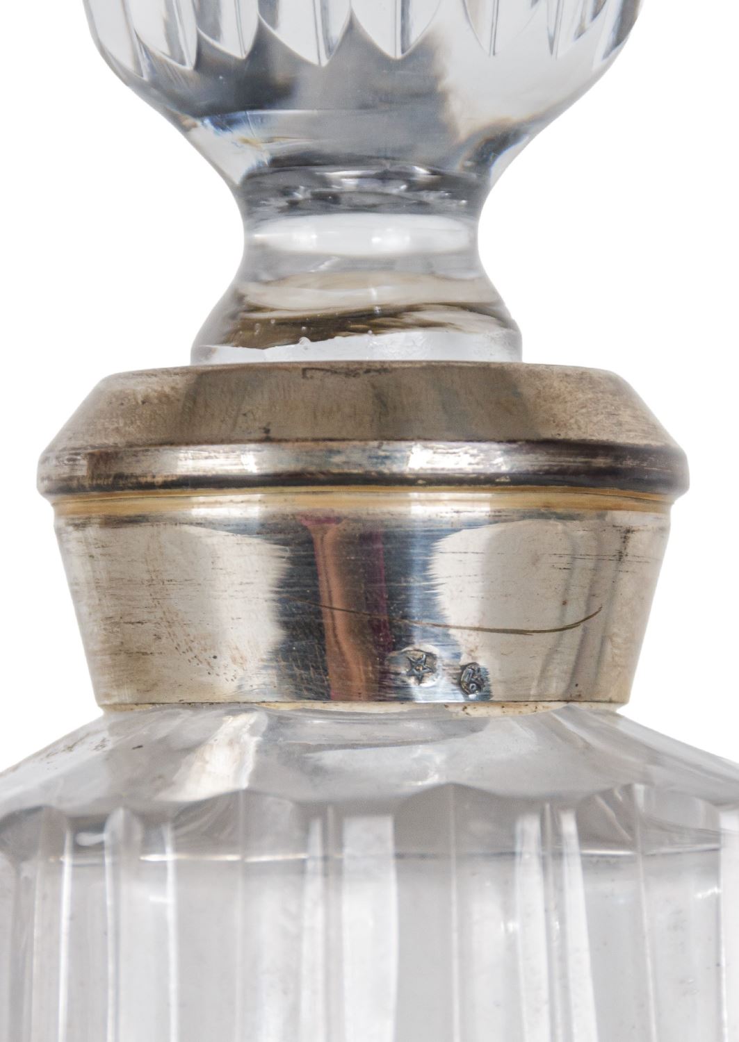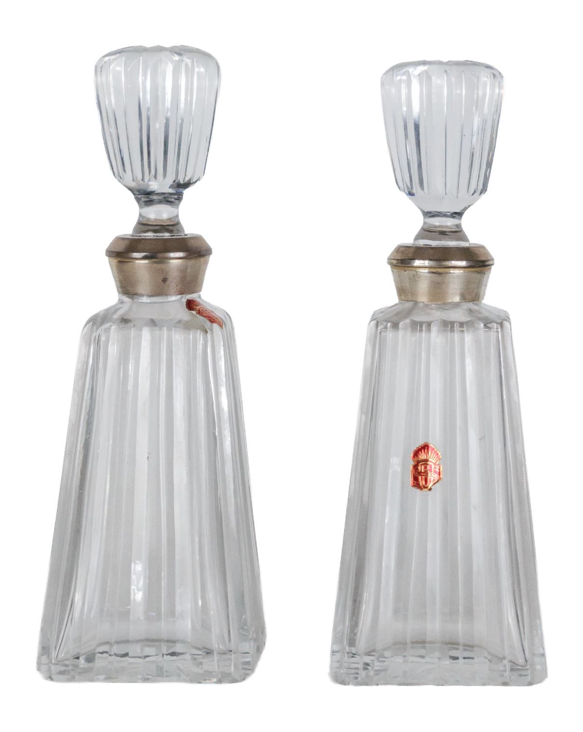 Realizadas en cristal tallado con embocadura en plata. Altura: 14 cm.