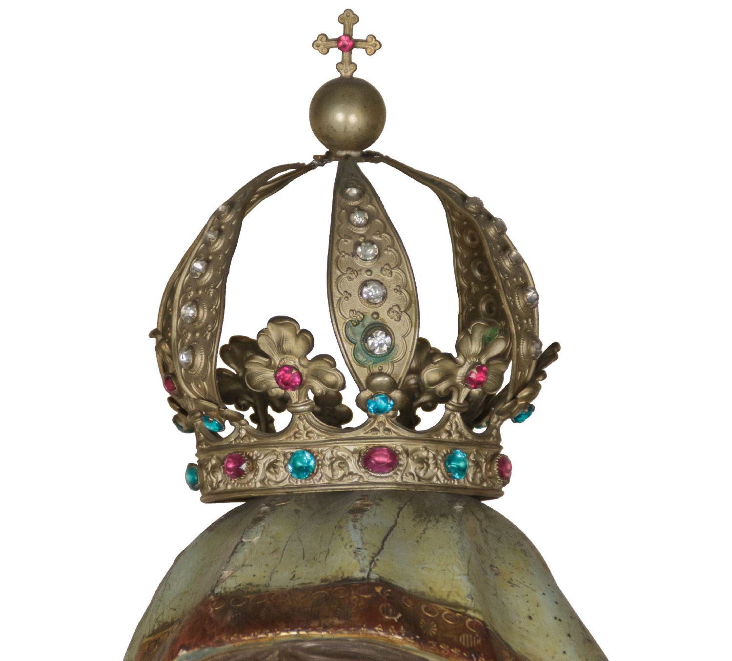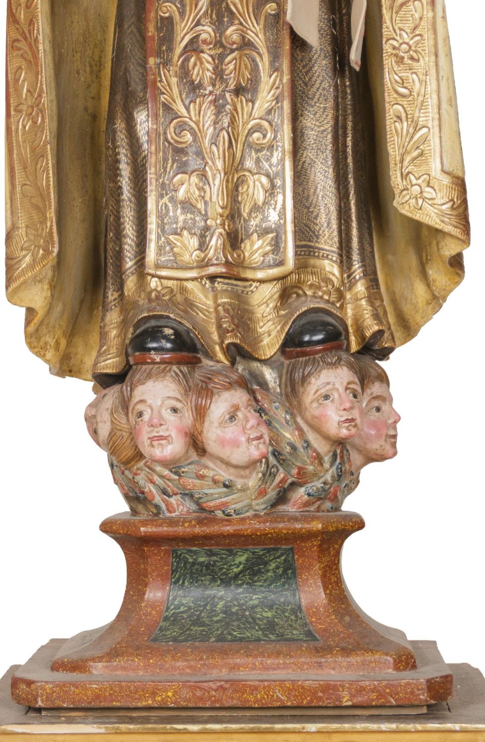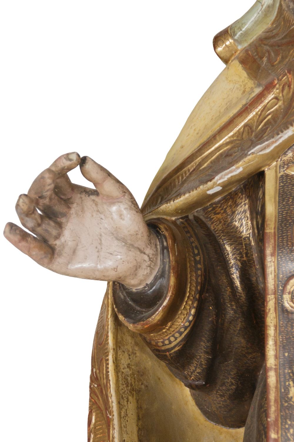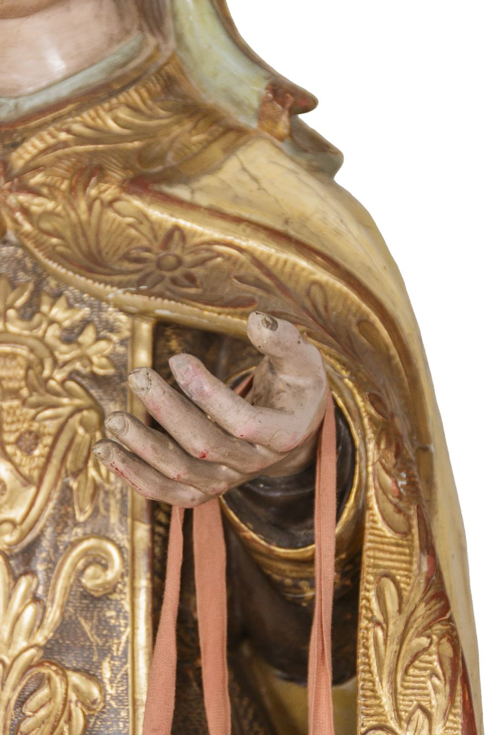 Virgen del Carmen. Realizada en madera tallada, dorada y policromada. Se acompaña de peana. Medidas: 186 x 50 x 50 cm.