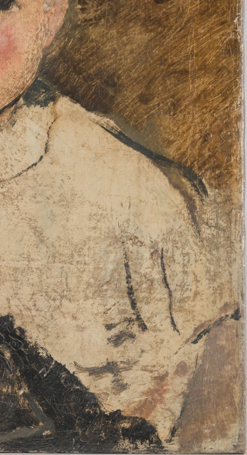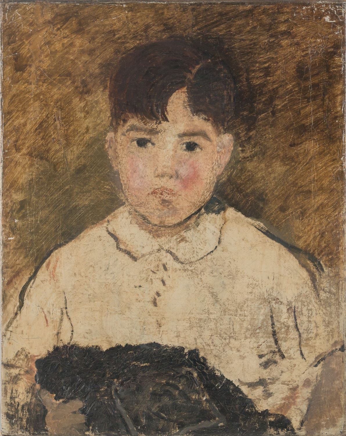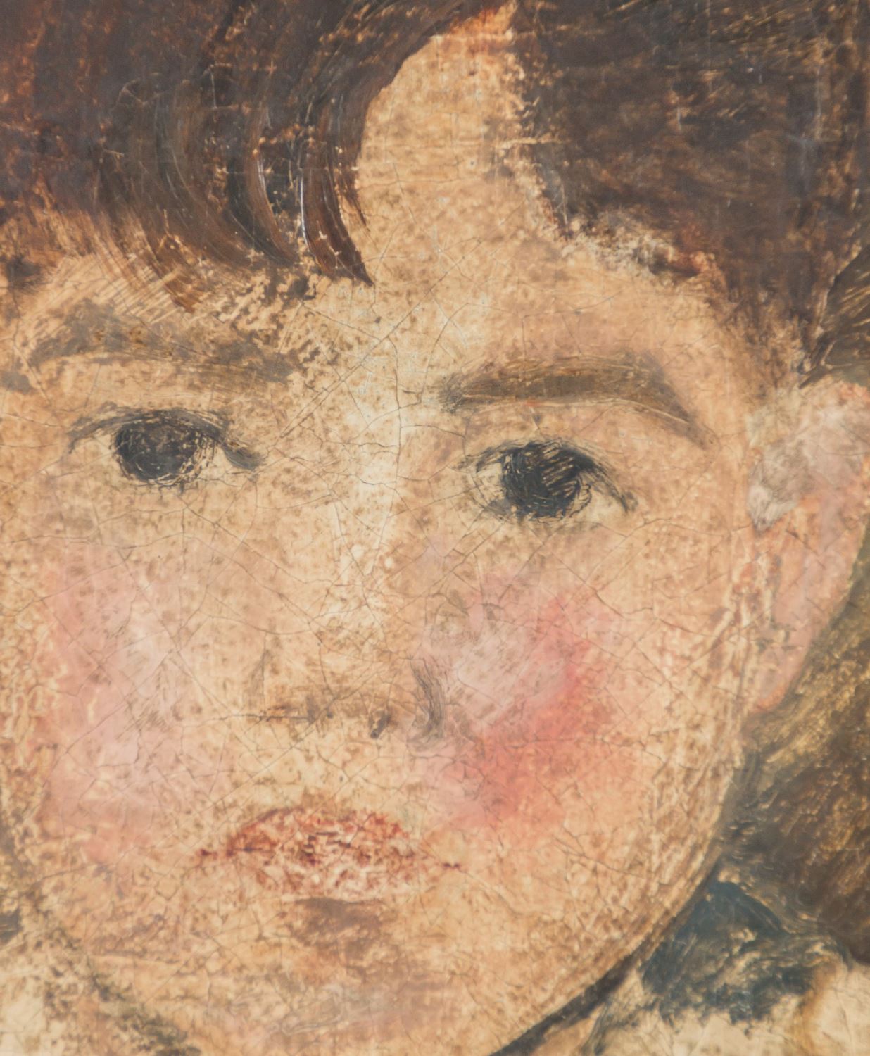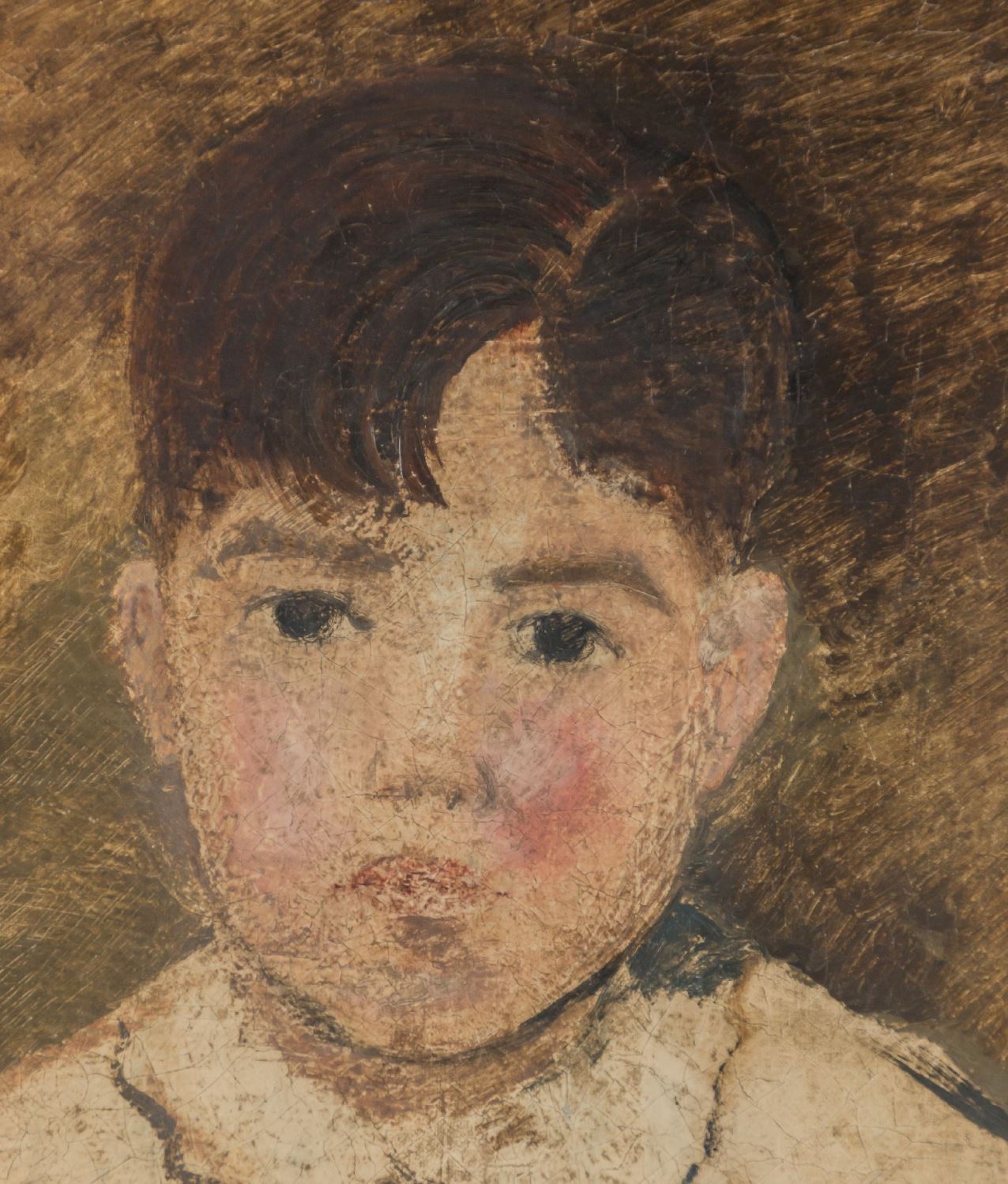 Retrato de niño. Óleo sobre lienzo. Ligeras faltas. Reentelado. Medidas: 50 x 40 cm.