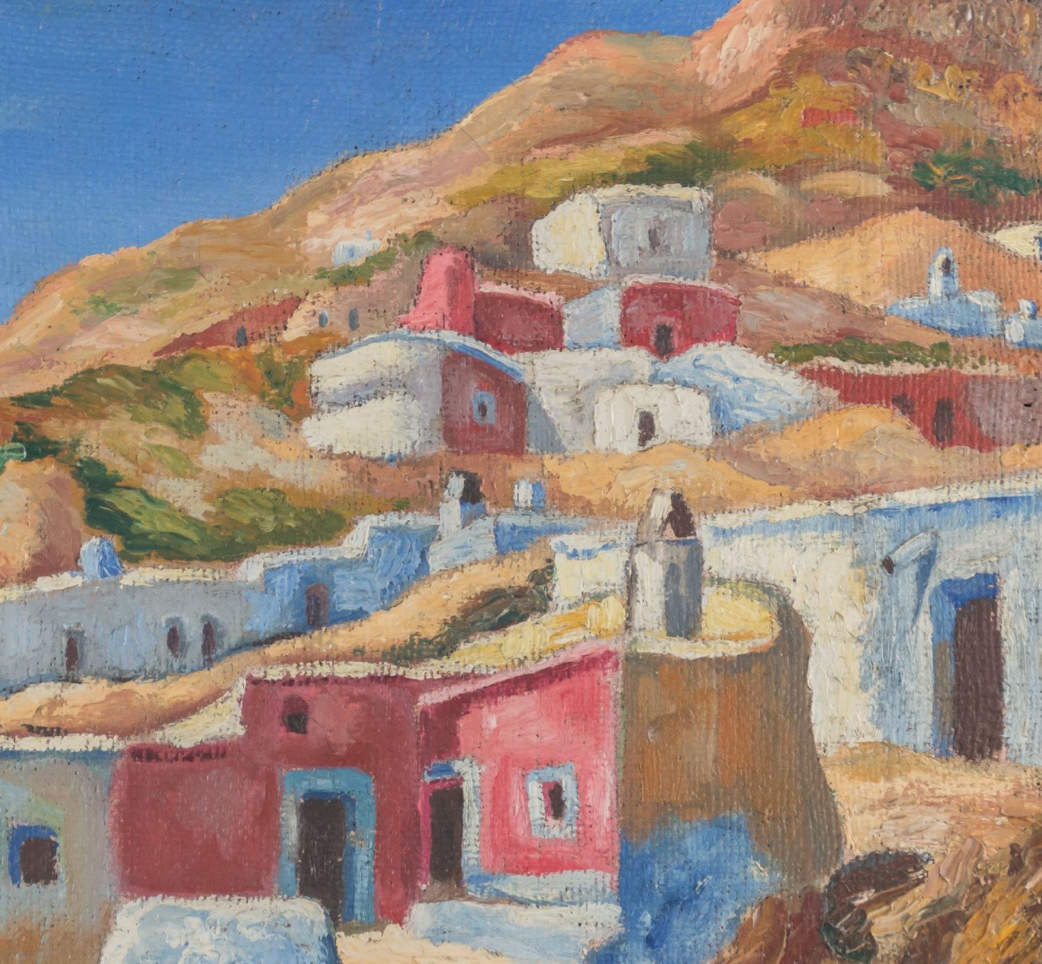 Casas de la Chanca. Óleo sobre lienzo. Firmado. Medidas sin marco: 50 x 61 cm. Medidas con marco: 54 x 65 cm.