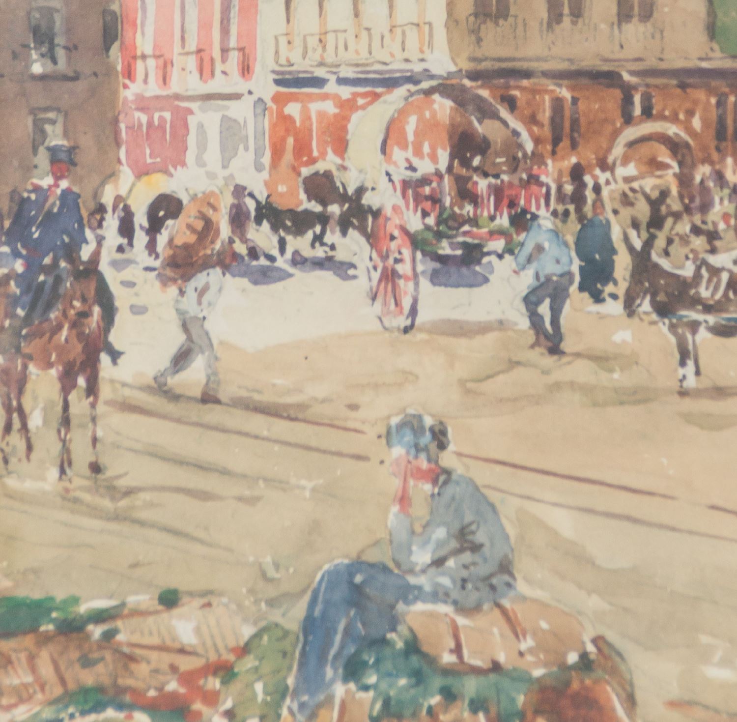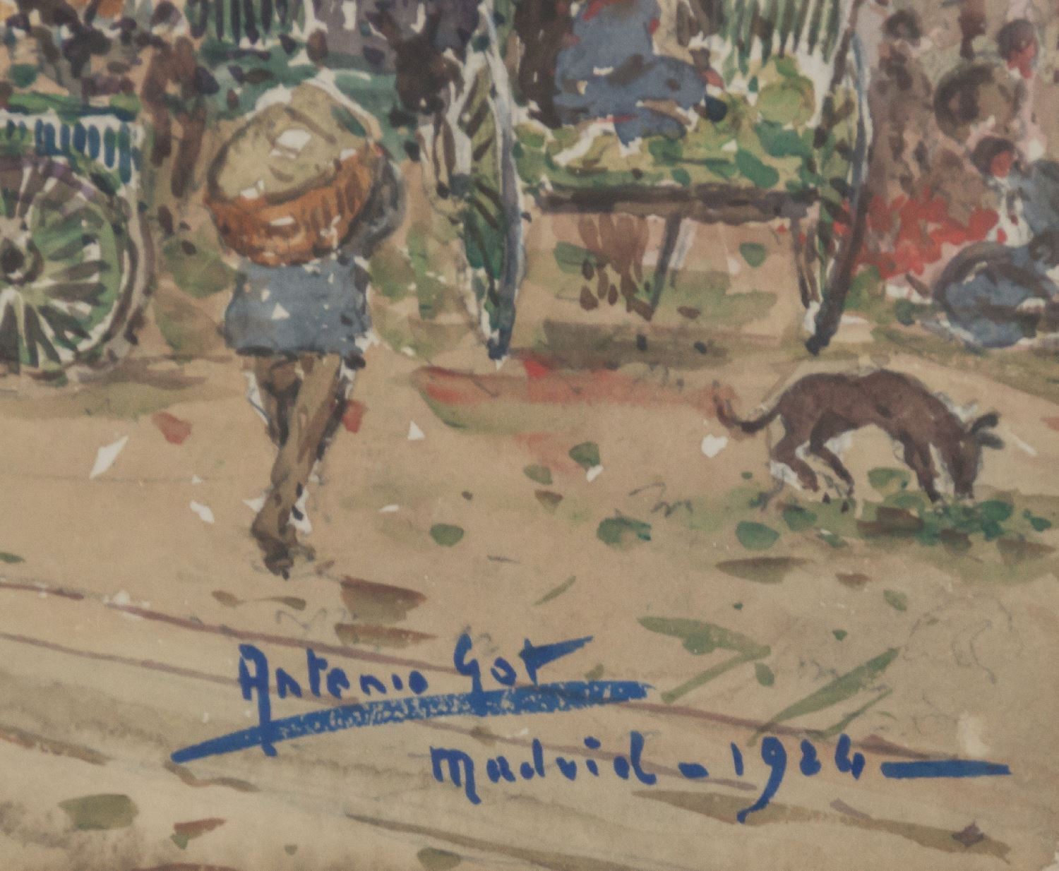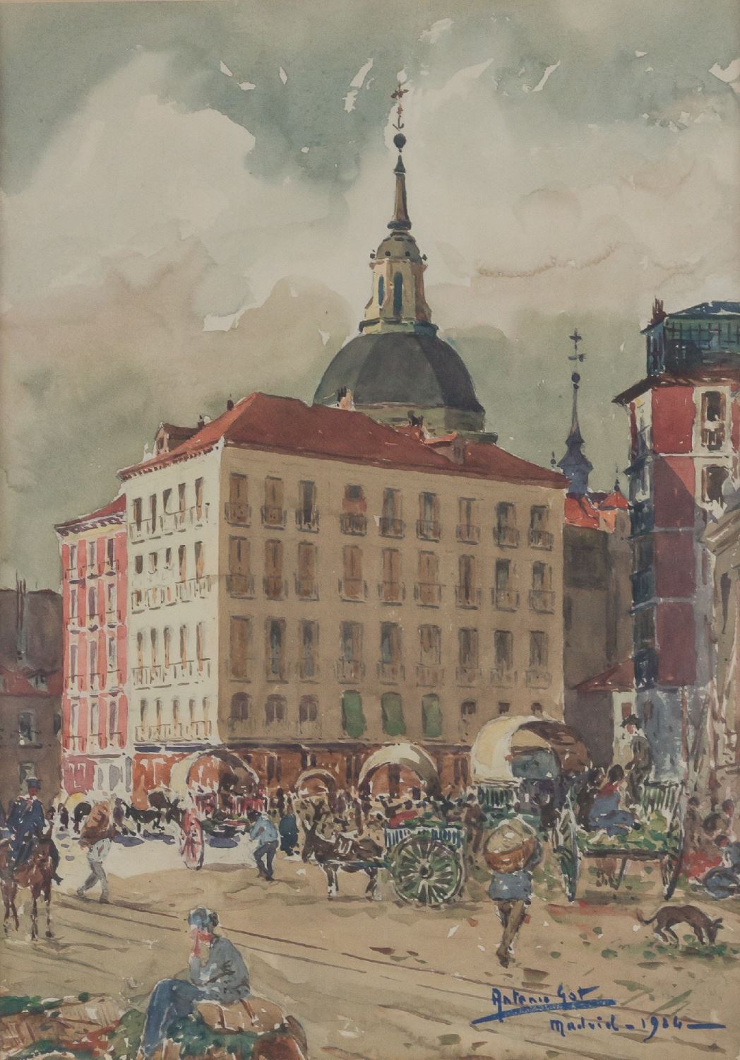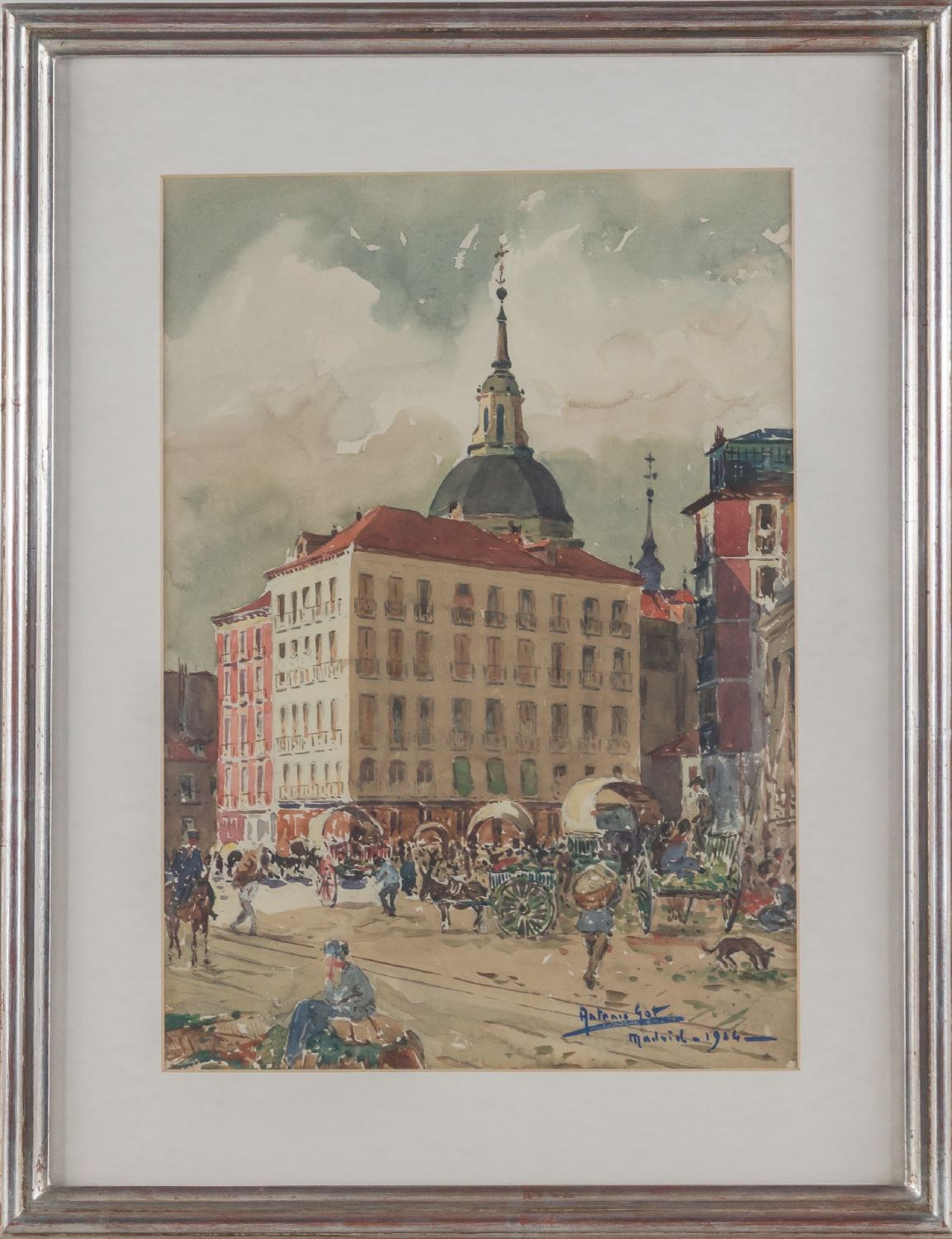 Calle de Madrid. Acuarela sobre papel. Firmada y fechada en 1924. Medidas sin marco: 34 x 24 cm. Medidas con marco: 44 x 33,5 cm.