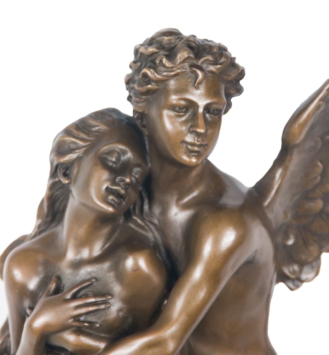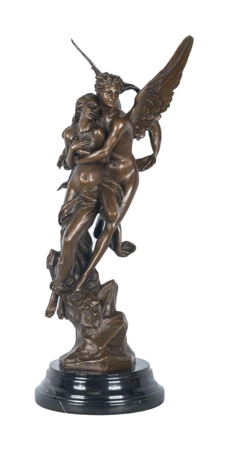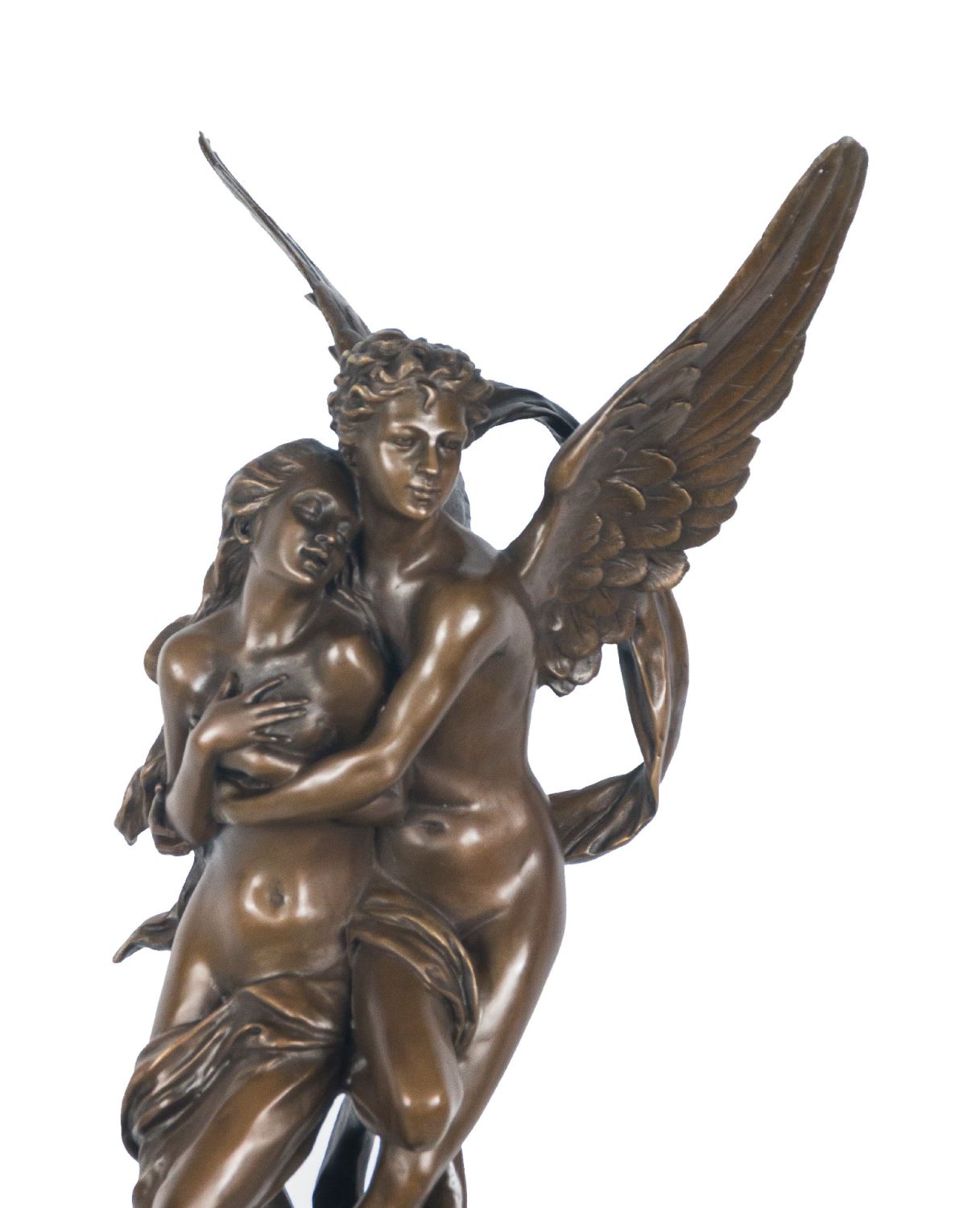 Cupido y Psique. Realizada en bronce con peana de mármol. Firmada. Medidas: 62 x 29 x 22 cm.