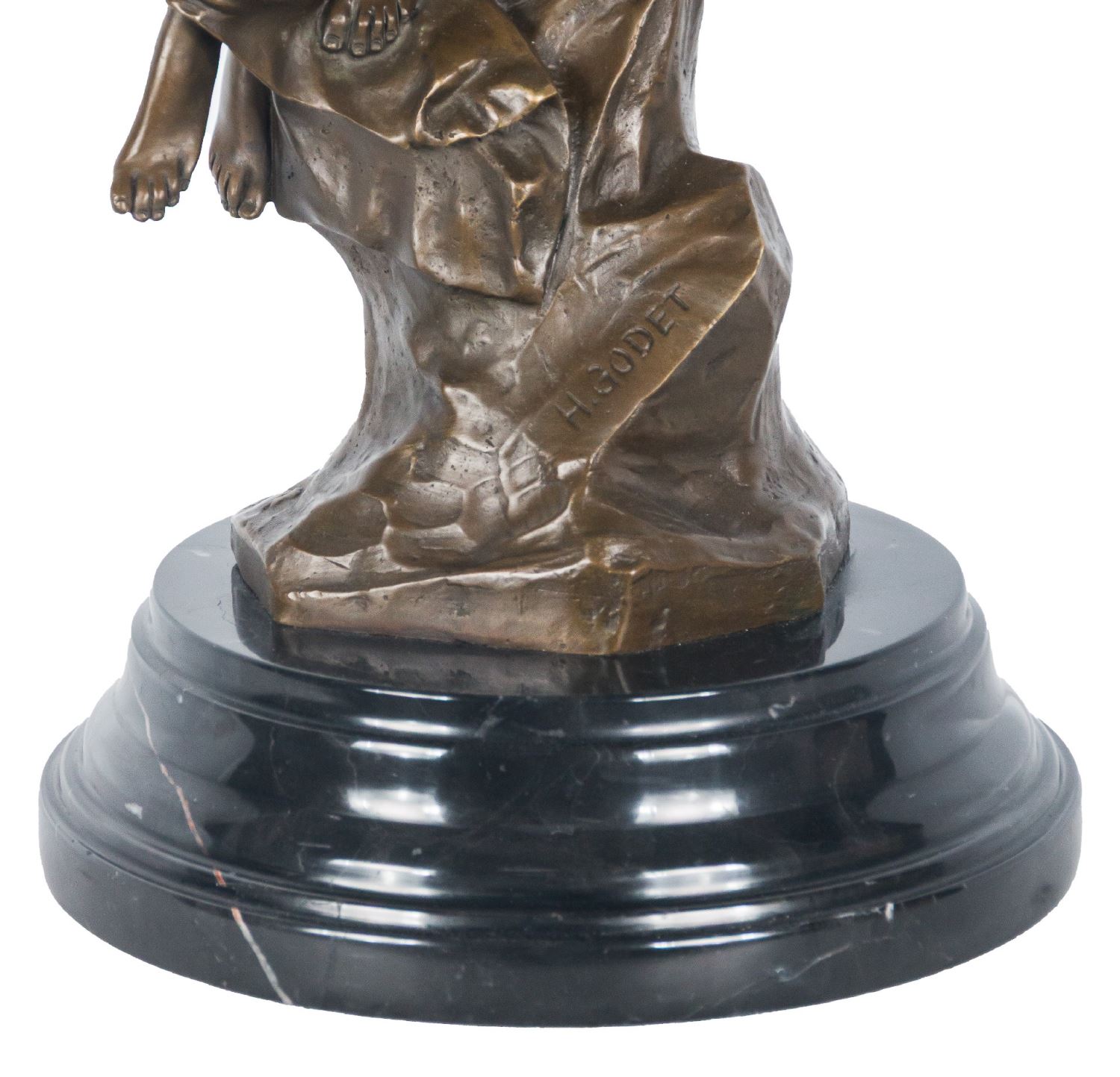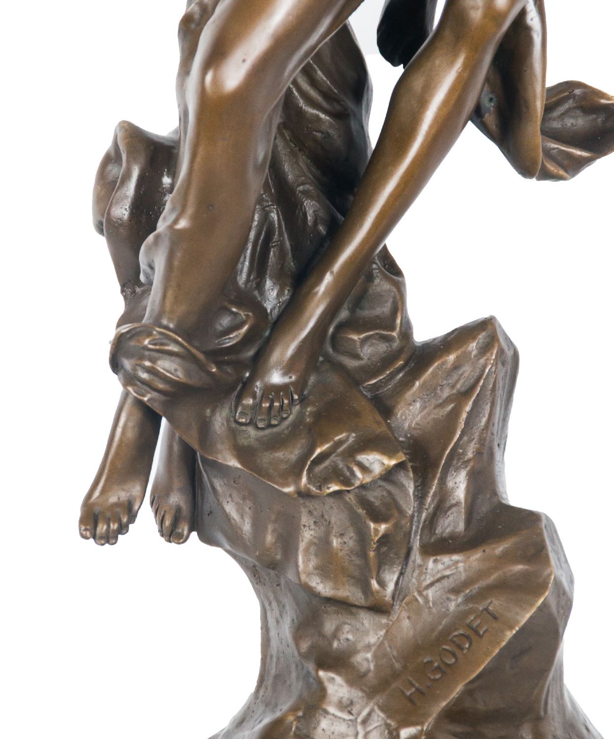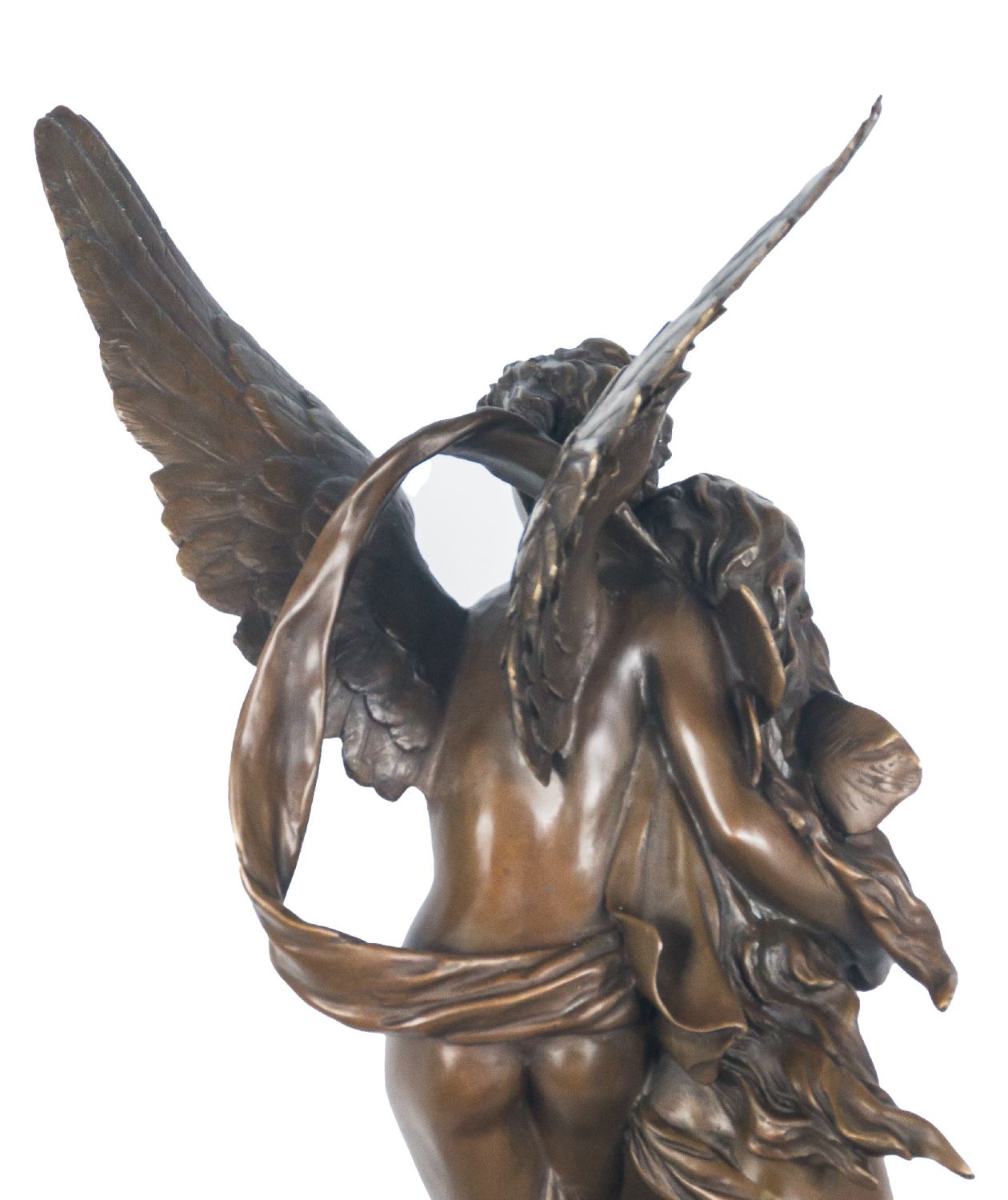 Cupido y Psique. Realizada en bronce con peana de mármol. Firmada. Medidas: 62 x 29 x 22 cm.