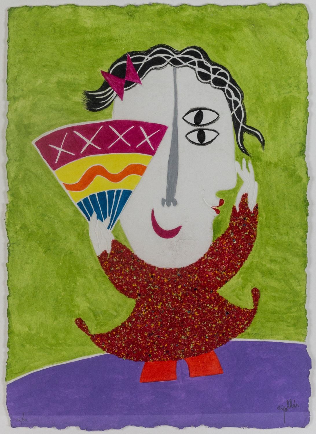 Niña con abanico. Grabado matérico. Firmado y numerado 22/50. Medidas con marco: 94 x 72 cm.