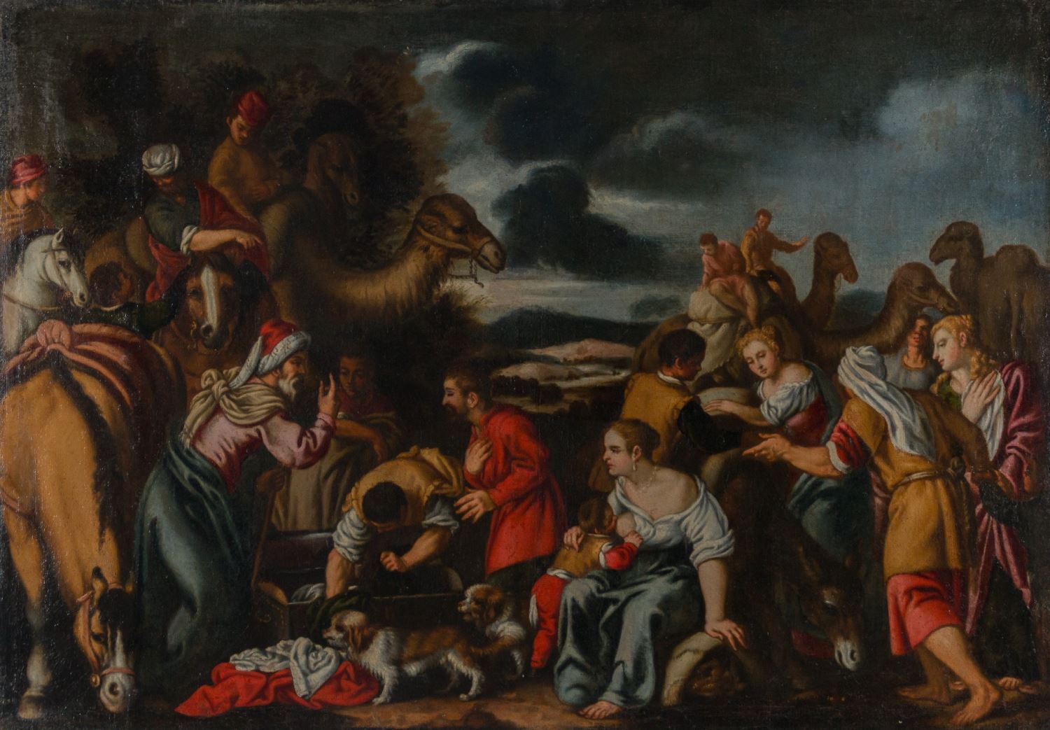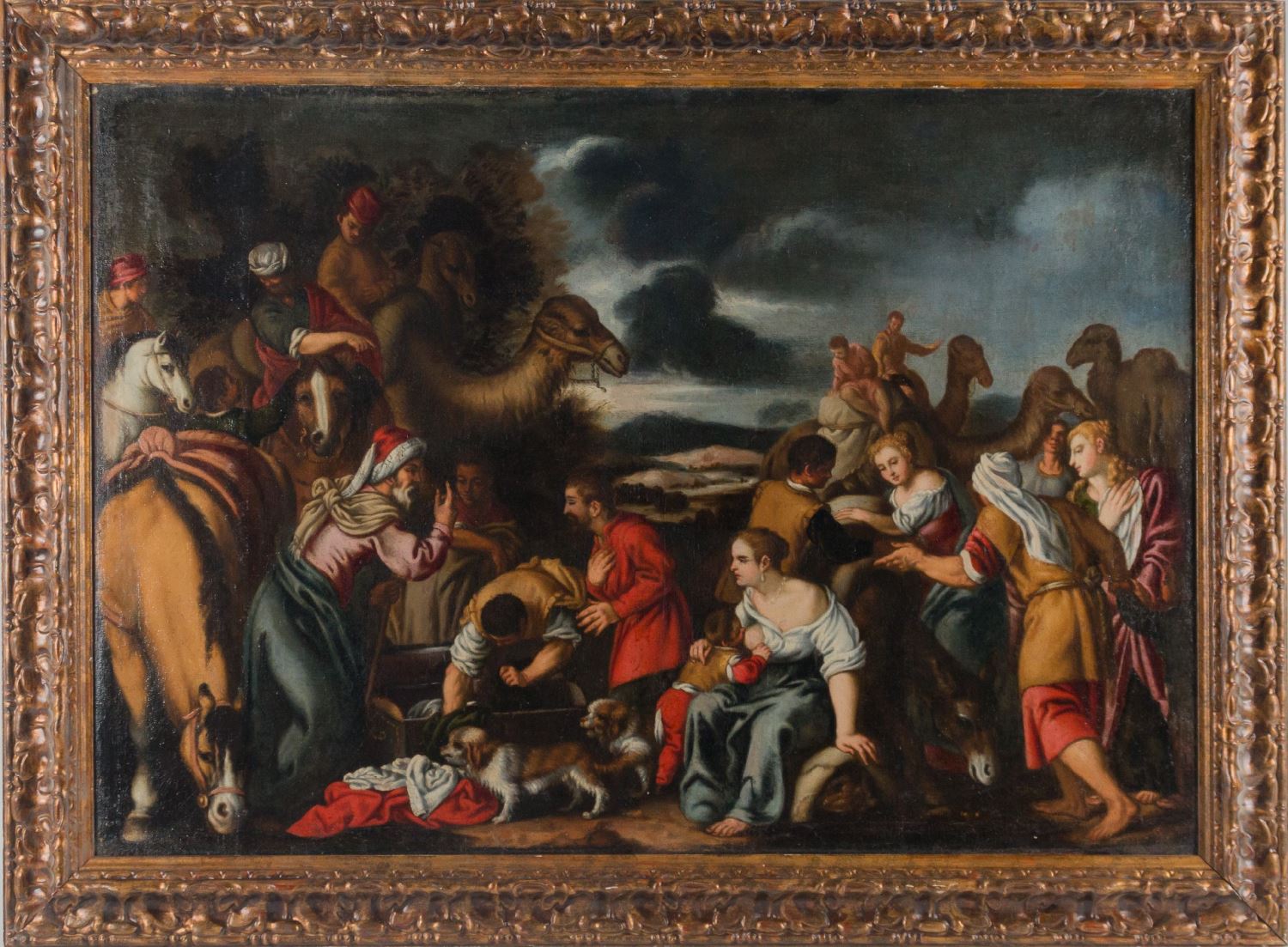Labán busca los ídolos. Óleo sobre lienzo. Medidas sin marco: 86 x 122 cm. Medidas con marco: 107 x 144 cm.