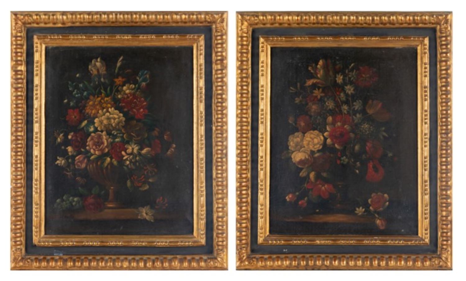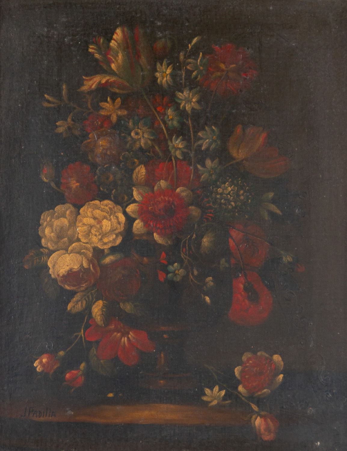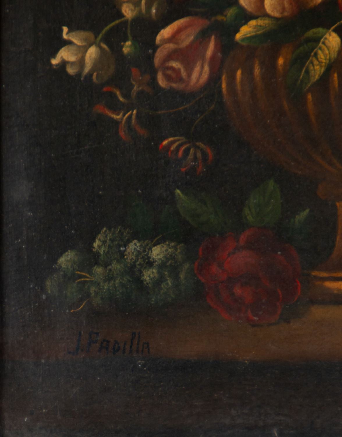 Pareja de floreros. Óleo sobre lienzo. Firmados J. Padilla. Medidas sin marco: 48 x 38 cm. Medidas con marco: 66 x 56 cm.