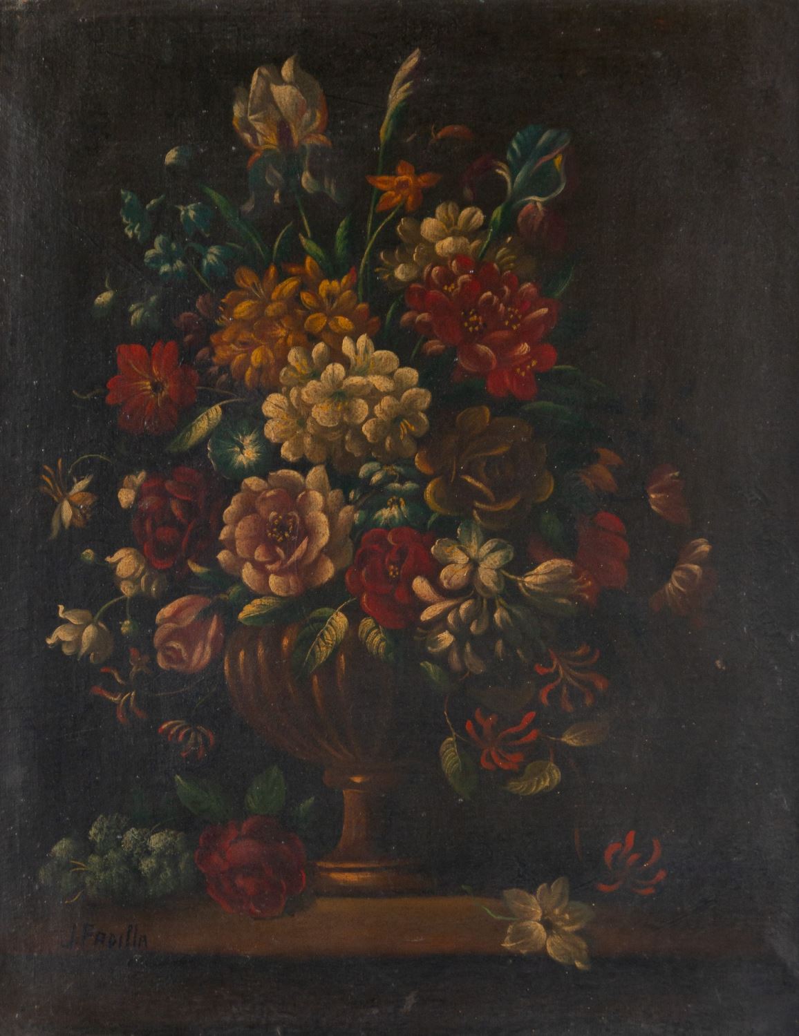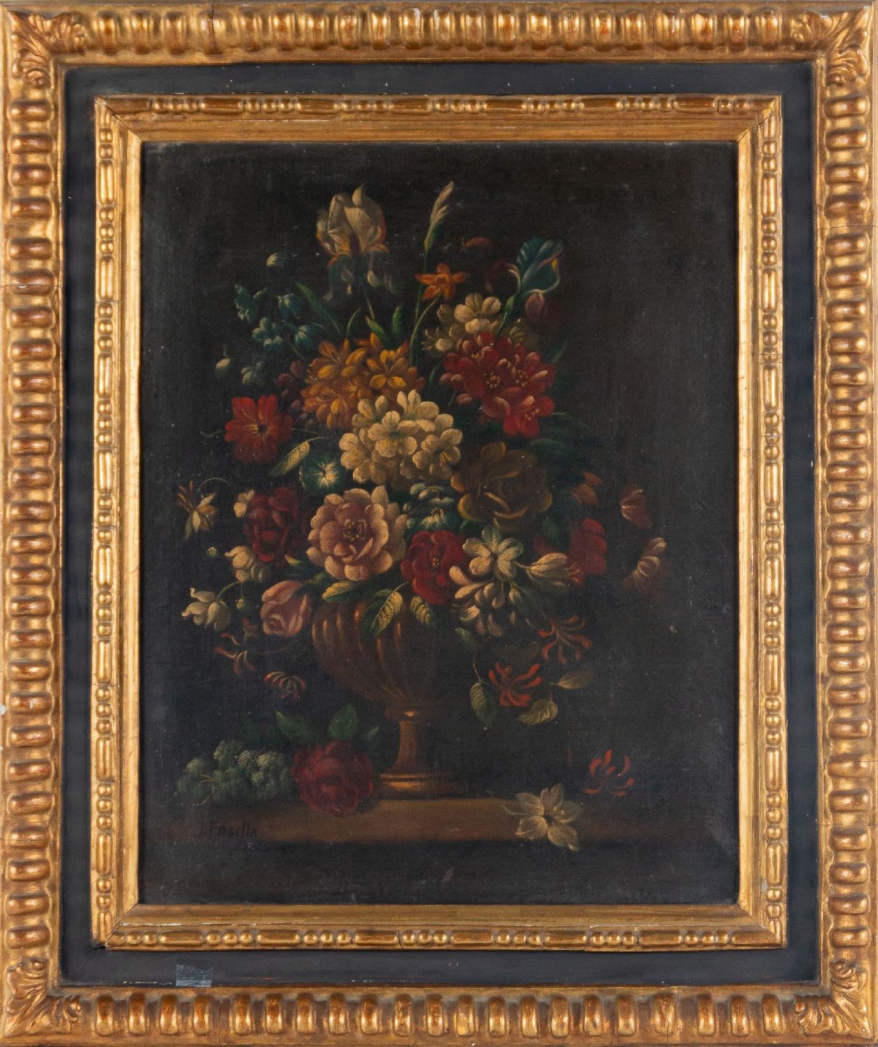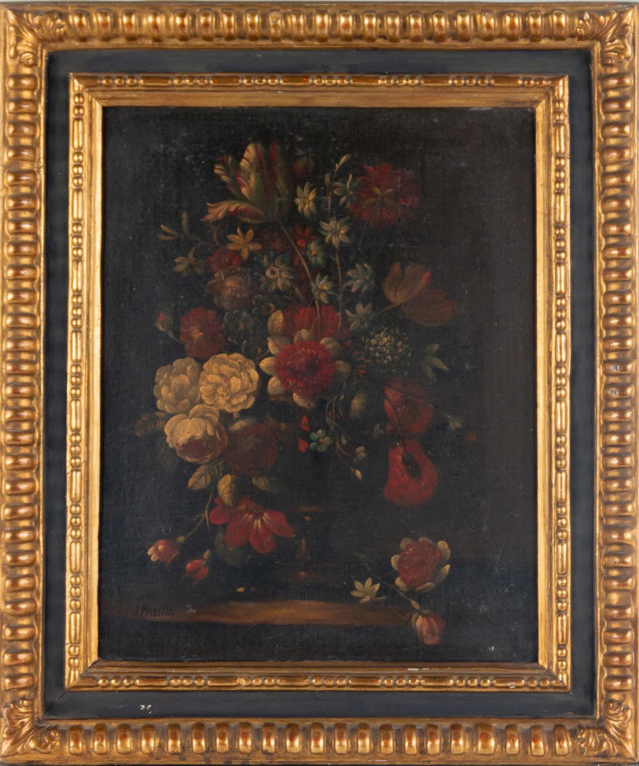 Pareja de floreros. Óleo sobre lienzo. Firmados J. Padilla. Medidas sin marco: 48 x 38 cm. Medidas con marco: 66 x 56 cm.