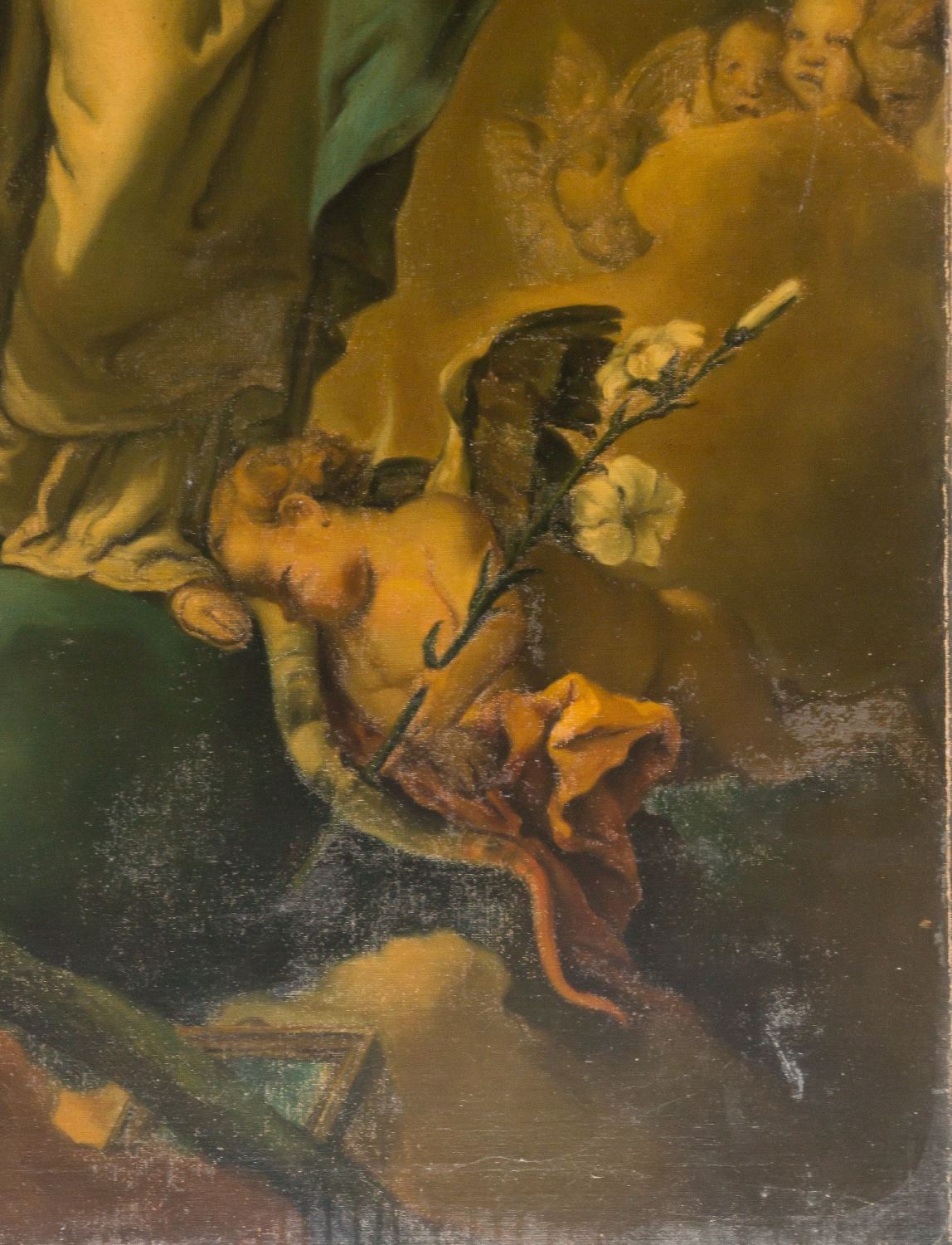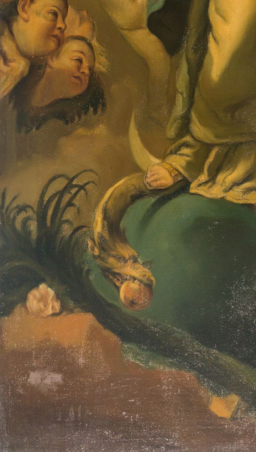 Inmaculada Concepción. Óleo sobre lienzo. Faltas. Reentelado. Medidas: 150 x 79,5 cm.