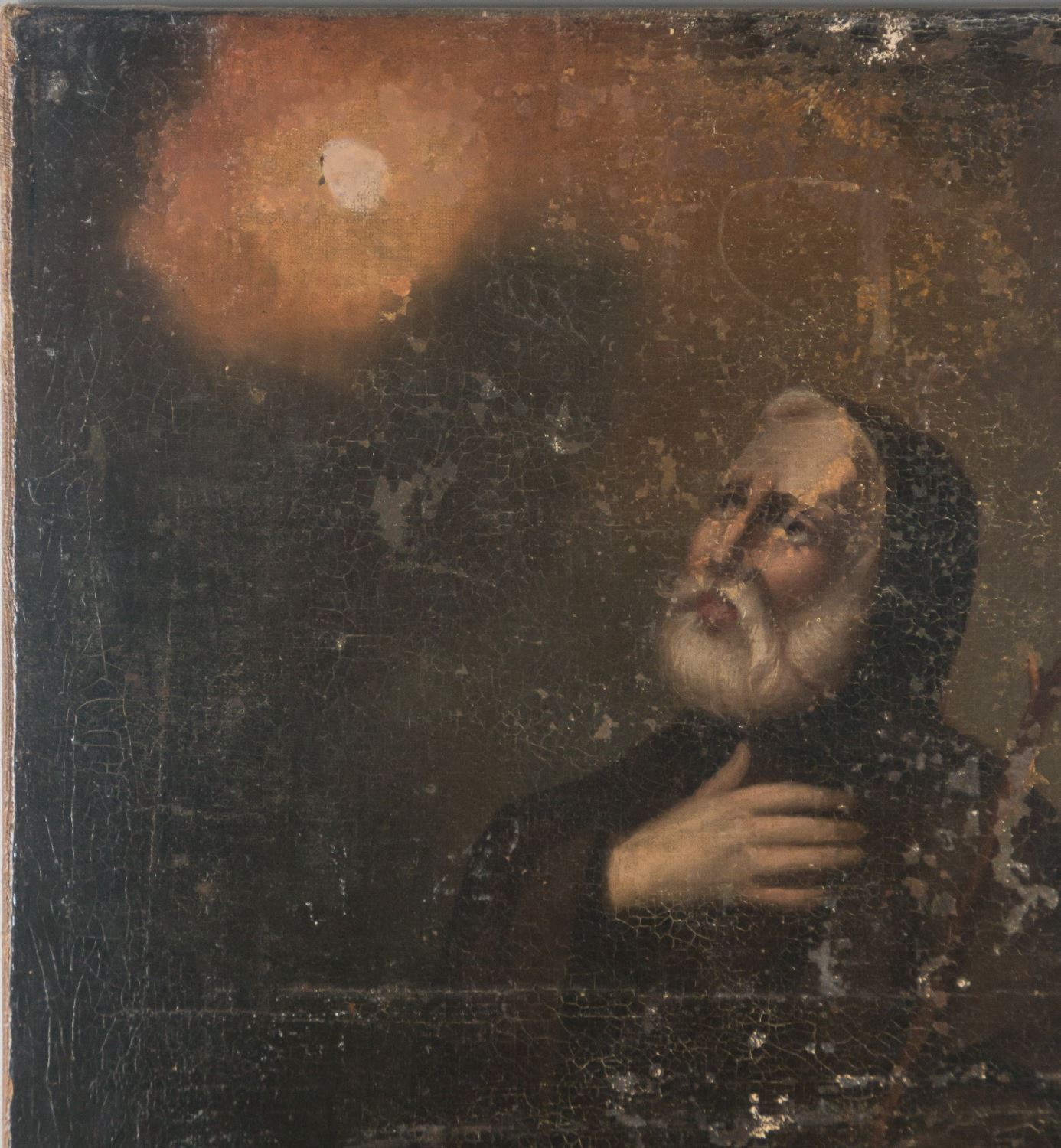 San Francisco de Asís. Óleo sobre lienzo. Faltas. Reentelado. Medidas: 81 x 61 cm.