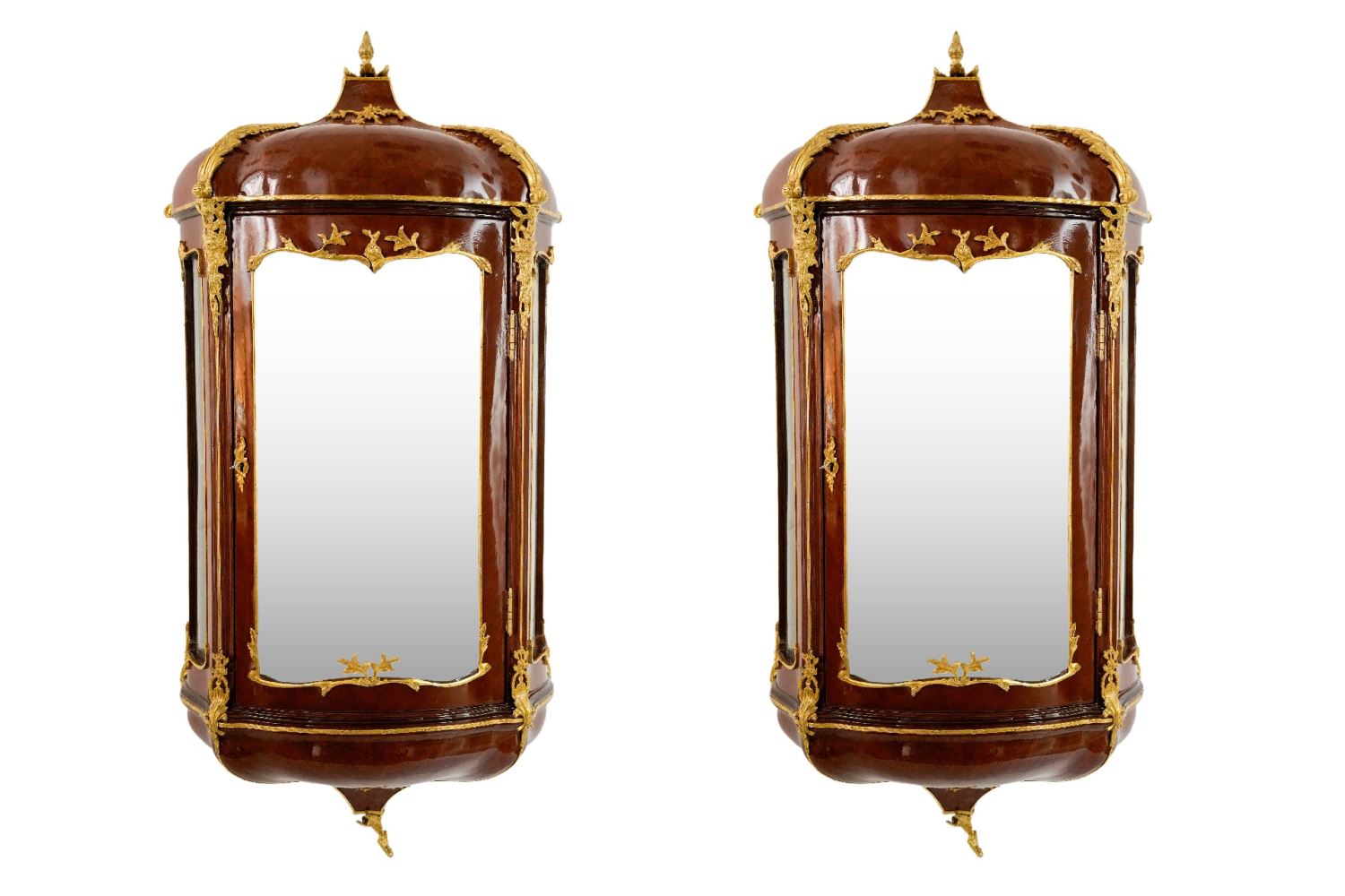 Pareja de vitrinas de colgar, estilo Luis XV, según modelo de Joseph-Emmanuel Zwiener
