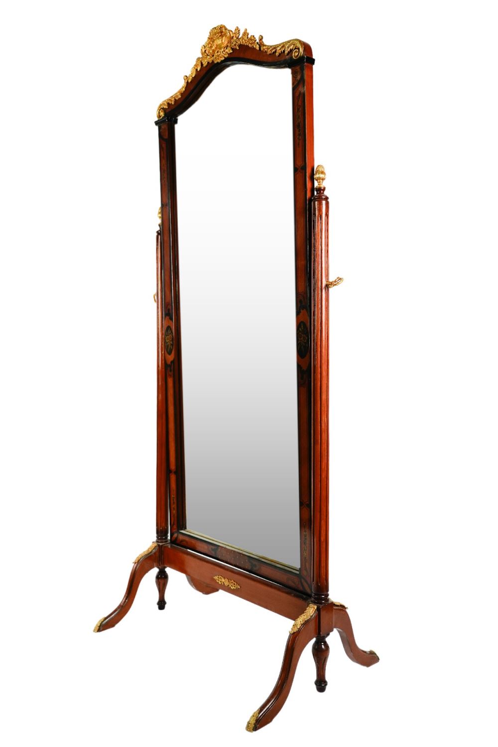 Realizado en madera con aplicaciones de bronce dorado. Presenta patas con pie trípode y relieves con decoración de rocallas, acantos y remates en forma de piña. Medidas: 175 x 78 cm.